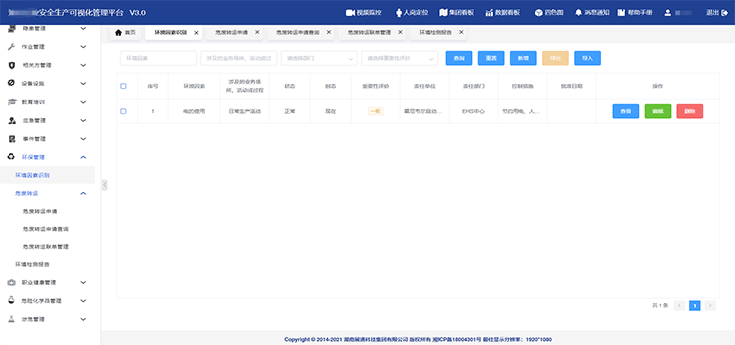 環(huán)境因素識(shí)別:可實(shí)現(xiàn)可環(huán)境因素的狀態(tài)、時(shí)態(tài)、環(huán)境影響、控制措施的實(shí)時(shí)把控,形成環(huán)境因素識(shí)別清單;