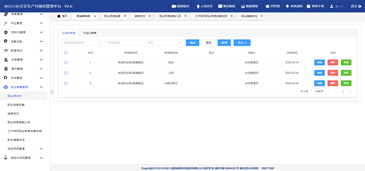 進(jìn)行職業(yè)病危害因素識(shí)別、管理,智能生成職業(yè)危害告知卡,建立職業(yè)危害人員/崗位臺(tái)賬,進(jìn)行職業(yè)危害場(chǎng)所檢測(cè),上傳職業(yè)健康體檢報(bào)告,建立職業(yè)健康管理檔案。