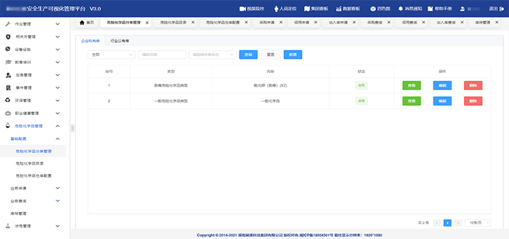 實(shí)現(xiàn)危險(xiǎn)化學(xué)品分類管理,構(gòu)建危險(xiǎn)化學(xué)品目錄,支持危險(xiǎn)化學(xué)品采購、領(lǐng)用、及出入庫線上流程審批及記錄查詢,隨時(shí)把控相應(yīng)危險(xiǎn)化學(xué)品庫存情況。