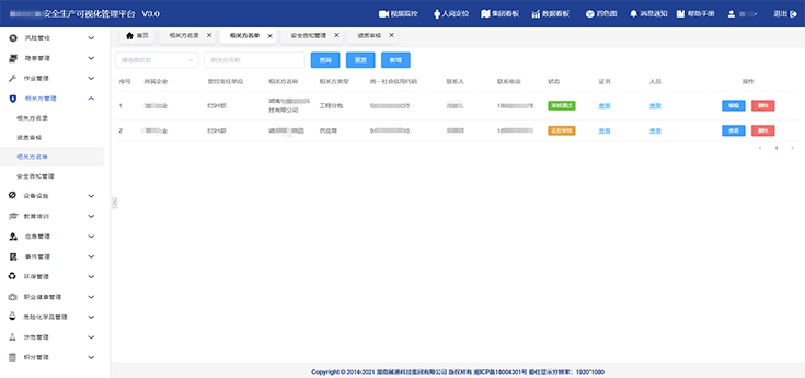 實(shí)現(xiàn)相關(guān)方安全告知數(shù)字化管理,涵蓋技術(shù)交底文件、安全協(xié)議、安全告知書等模塊,方便溯源追蹤,為企業(yè)自身盡責(zé)履職提供強(qiáng)有力的證據(jù)說明。