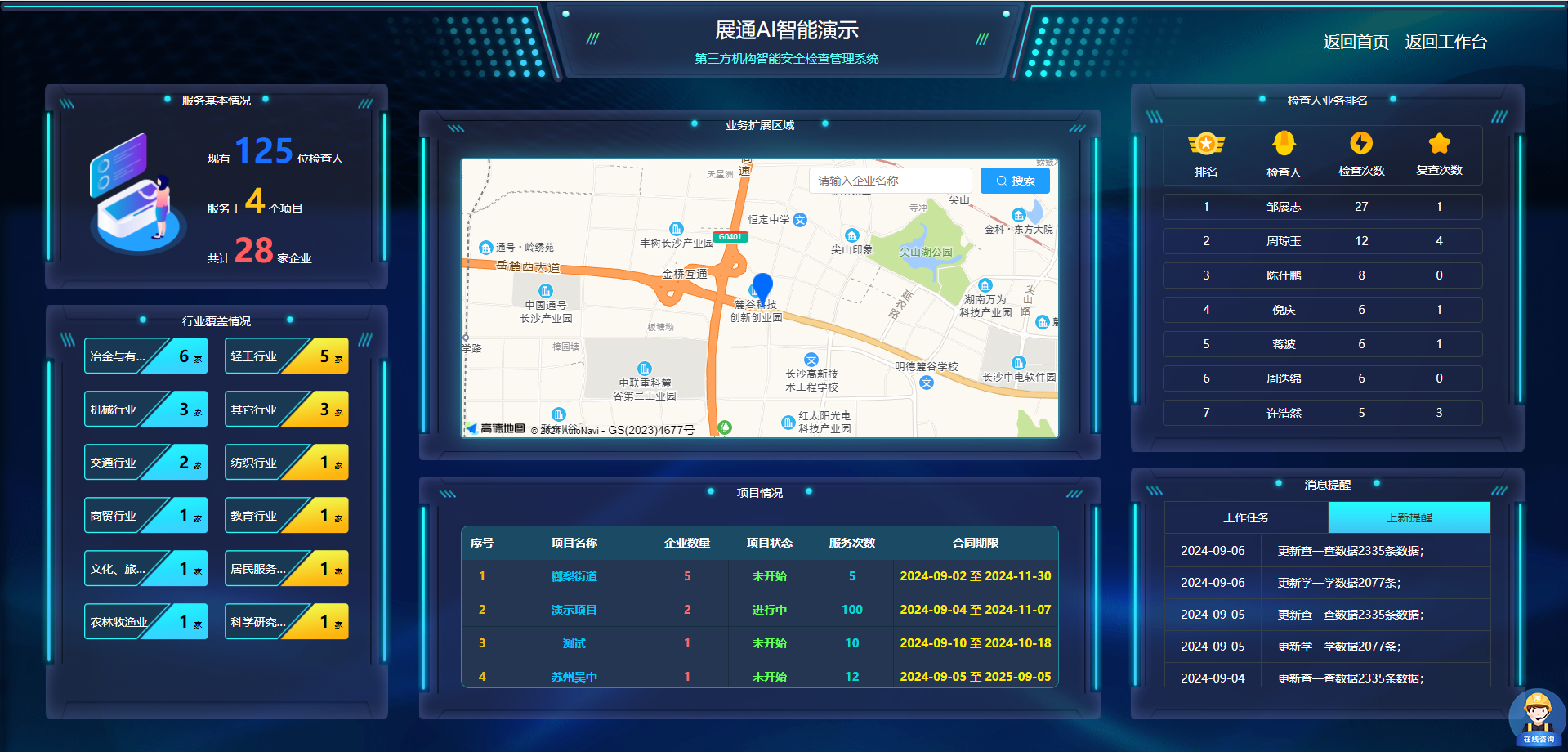 安全檢查智能管理系統(tǒng)是為安全檢查人員打造的智能檢查工具。系統(tǒng)內(nèi)置30個(gè)行業(yè),近400個(gè)專業(yè)的隱患數(shù)據(jù)庫,配置了多行業(yè)安全檢查表,支持AI智能識(shí)別現(xiàn)場(chǎng)隱患,法律法規(guī)、技術(shù)規(guī)范等在線便捷搜索,專業(yè)助力安全檢查工作提效減負(fù),全盤把控轄區(qū)隱患排查及治理進(jìn)度。系統(tǒng)匹配了電腦端+移動(dòng)端小程序,用戶可通過賬號(hào)登陸參與系統(tǒng)管理,完成安全檢查、安全復(fù)查、報(bào)告下載等一系列動(dòng)作。